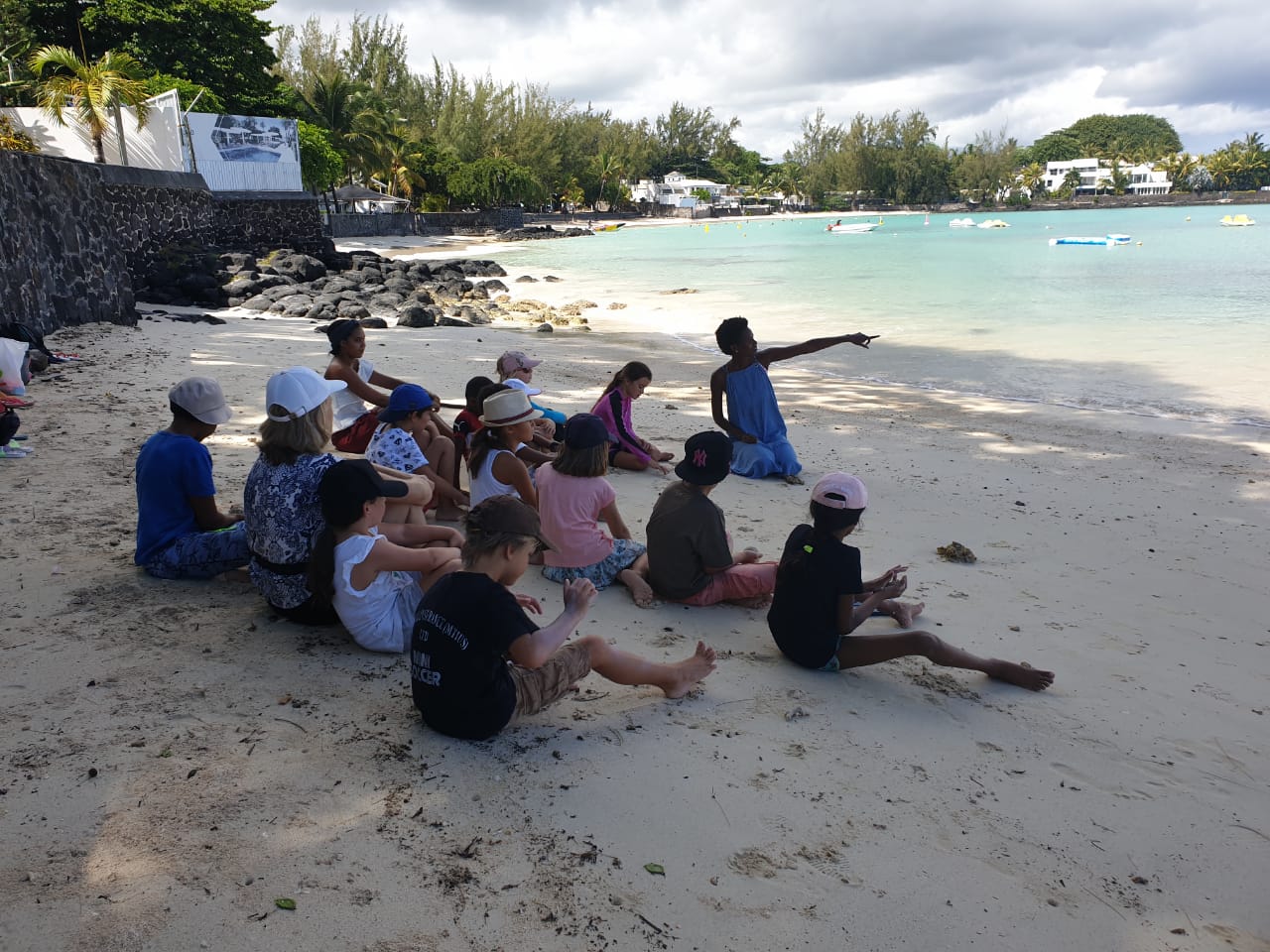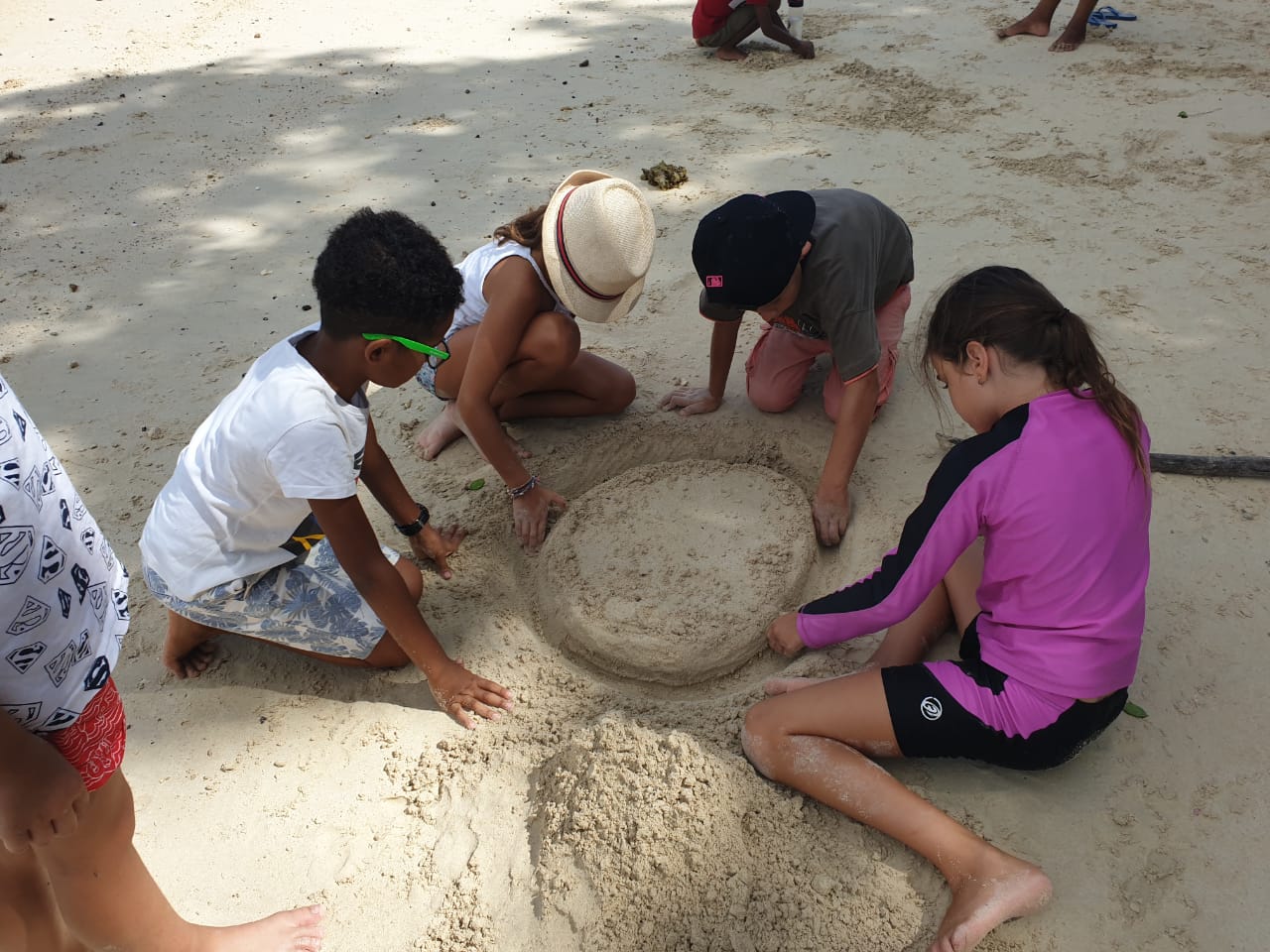 Les élèves suivent des cours de Sciences Marines : l’occasion de découvrir à la plage la vie secrète du lagon !