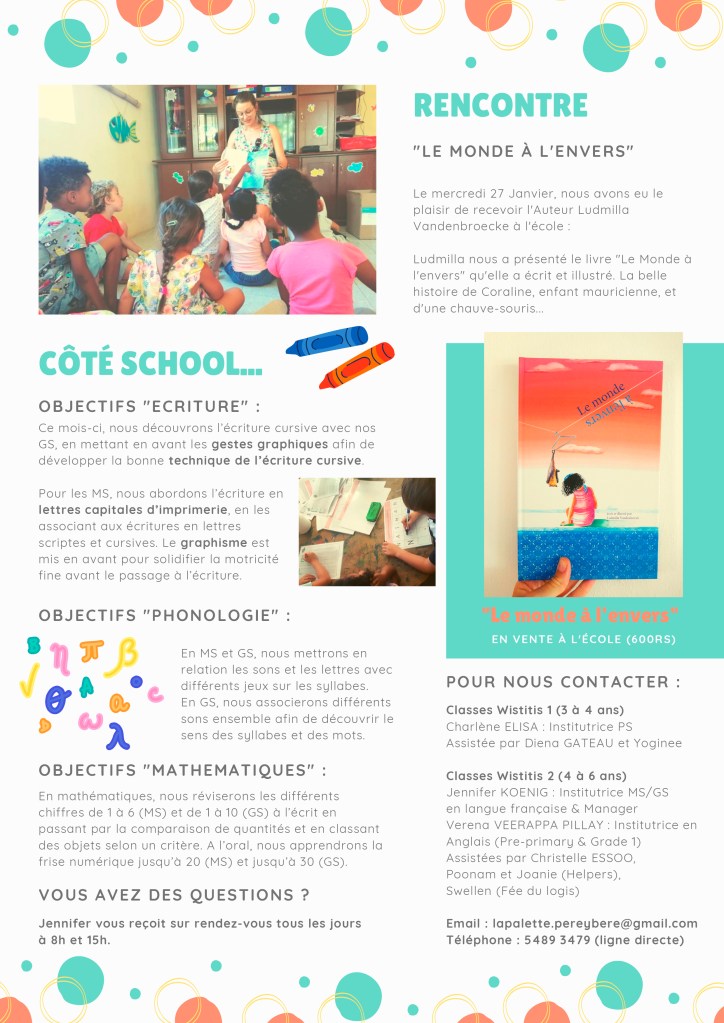 Les enfants ont pu rencontrer Ludmilla Vandenbroecke, l’Auteure du livre mauricien « Le Monde à l’envers » ! The children were able to meet Ludmilla Vandenbroecke, the author of the Mauritian book « Le Monde à l’envers »!